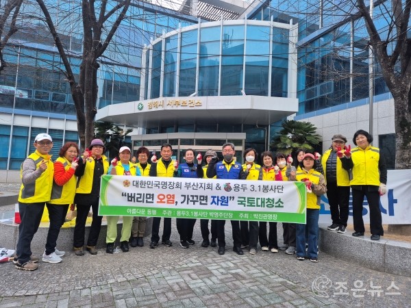 [(경남)조은뉴스=이재훈 기자] 대한민국명장회 부산지회(지회장 박진관 명장, 사무국장 신화남 명장)은 지난 29일 용두 3.1 봉사단(단장 박영주)에서 실시하는 국토대청소 봉사에 참여했다.